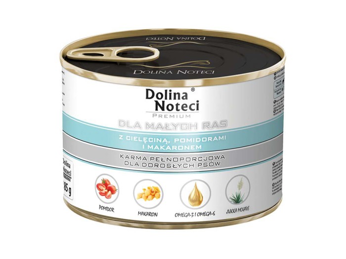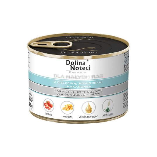 Karma pełnoporcjowa dla dorosłych psów małych ras z cielęciną, pomidorami i makaronem 185 g