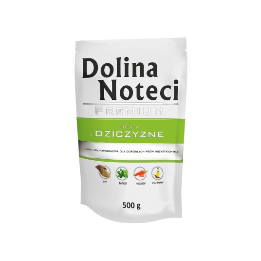 Pełnoporcjowa karma dla dorosłych psów wszystkich ras bogata w dziczyznę 500 g