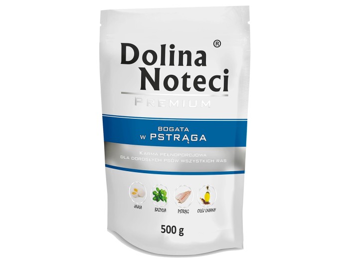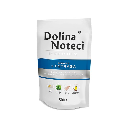 Pełnoporcjowa karma dla dorosłych psów wszystkich ras bogata w pstrąga 500 g
