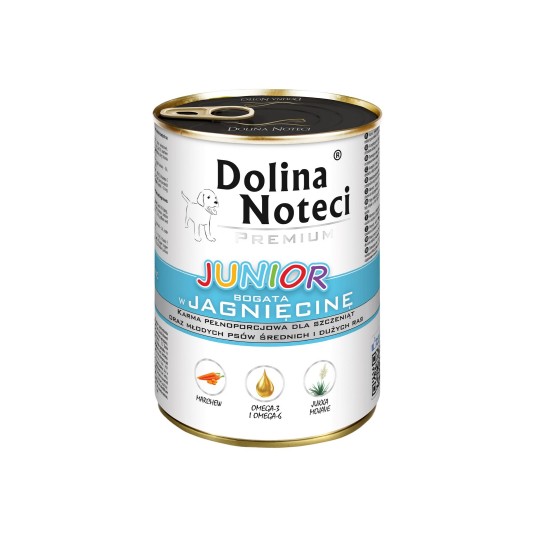 Karma pełnoporcjowa dla szczeniąt oraz młodych psów średnich i dużych ras bogata w jagnięcinę 400 g