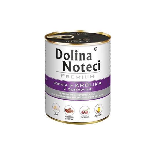 Wieprzowina 25% (mięso, przełyki, serca), rosół, wołowina 22% (płuca, żołądki, wymiona), królik 15% (wątroba), żurawina 4%, jaja 3%, węglan wapnia, trójpolifosforan sodu, olej lniany 0,2%, nasiona babki płesznik 0,2%, chlorek potasu.