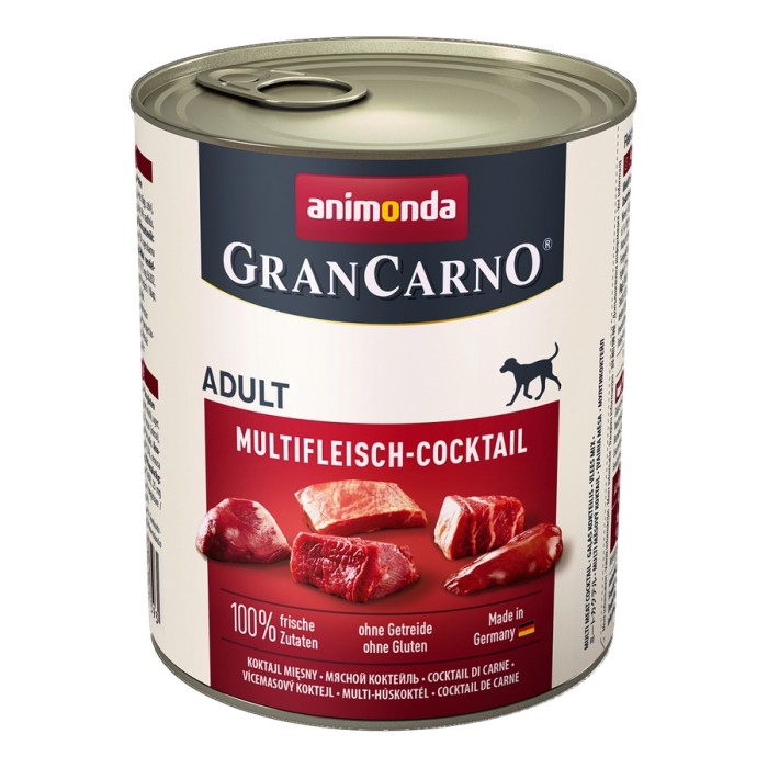 Psy to zwierzęta pochodzące od wilków, jednak 15 tysięcy lat wspólnego egzystowania z ludźmi mocno zmieniło ich wygląd oraz charakter. Jednak ich potrzeby żywieniowe i zapotrzebowanie na produkty pochodzenia zwierzęcego pozostało takie samo. Animonda GranCarno Original jest wytwarzana wyłącznie z wyselekcjonowanych składników, do których można zaliczyć serca, płuca, wątroby oraz mięso mięśniowe. Dokładne przygotowanie świeżych składników gwarantuje zachowanie i optymalną przyswajalność składników odżywczych. Tak samo fakt, że naturalne włókna mięsa są widoczne, pokazuje delikatne przygotowanie - jest to gwarancja świeżości i naturalności. Wszystko to jest oznaką doskonałego smaku i najlepszej akceptacji. Ponadto zrezygnowano ze źródeł węglowodanów, takich jak zboża oraz dodatku soi, glutenu, ulepszaczy smaku, sztucznych barwników i konserwantów. Specjalna mieszanka przeciwutleniaczy chroni oraz wzmacnia układ immunologiczny.