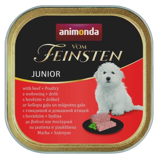 Animonda vom Feinsten Junior karma dla psów w praktycznych miseczkach dla szczeniąt od ok. 5. tygodnia życia oraz dla młodych, rosnących zwłaszcza małych ras.