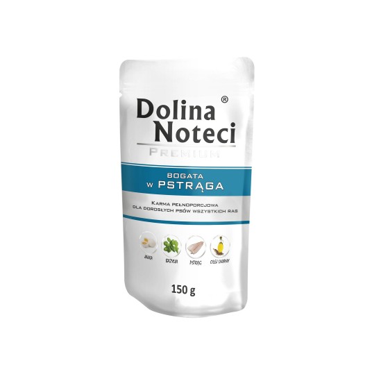 Pełnoporcjowa karma dla dorosłych psów wszystkich ras bogata w pstrąga 150 g
