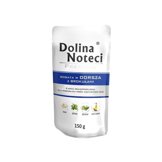 Pełnoporcjowa karma dla dorosłych psów wszystkich ras bogata w dorsza z brokułami 150 g