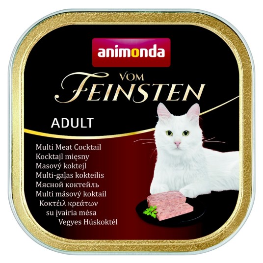 Animonda vom Feinsten Adult to zbilansowana karma mokra dla dorosłych kotów. Karma produkowana jest wyłącznie ze starannie wyselekcjonowanych rodzajów mięs najwyższej jakości. Receptura nie zawiera źródeł węglowodanów, co sprawia, że karma może być podawana kotom wrażliwym na niektóre składniki pokarmowe lub kotom nietrawiącym zbóż. Wysoki udział mięsa zaopatruje Twojego ulubieńca w odpowiednią ilość białka, które jest dokładnie tym, czego Twój kot najbardziej potrzebuje i jest w stanie najlepiej przyswoić. Naturalna tauryna wspiera przede wszystkim wzrok i zdrowie serca. Każdy z wariantów (za wyjątkiem Drób z makaronem) jest wolny od soi, zbóż i składników GMO. Zrezygnowano także z dodatku wszelkiego rodzaju sztucznych barwników, konserwantów i aromatów.