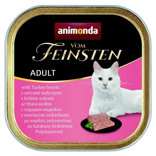 Animonda vom Feinsten Adult to zbilansowana karma mokra dla dorosłych kotów. Karma produkowana jest wyłącznie ze starannie wyselekcjonowanych rodzajów mięs najwyższej jakości. Receptura nie zawiera źródeł węglowodanów, co sprawia, że karma może być podawana kotom wrażliwym na niektóre składniki pokarmowe lub kotom nietrawiącym zbóż. Wysoki udział mięsa zaopatruje Twojego ulubieńca w odpowiednią ilość białka, które jest dokładnie tym, czego Twój kot najbardziej potrzebuje i jest w stanie najlepiej przyswoić. Naturalna tauryna wspiera przede wszystkim wzrok i zdrowie serca. Każdy z wariantów (za wyjątkiem Drób z makaronem) jest wolny od soi, zbóż i składników GMO. Zrezygnowano także z dodatku wszelkiego rodzaju sztucznych barwników, konserwantów i aromatów.