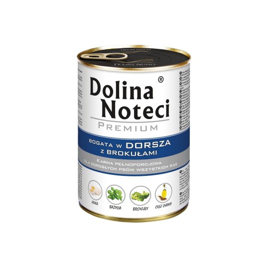 Pełnoporcjowa karma dla dorosłych psów wszystkich ras bogata w dorsza z brokułami 400 g