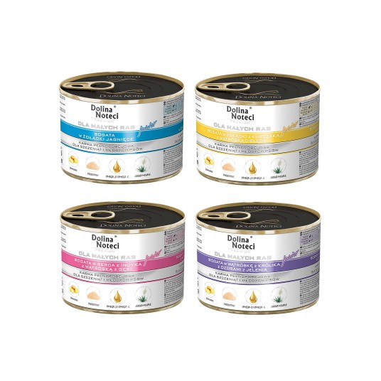 7) Skład karm Dolina Noteci Premium jest niezmienny – gwarantuje to stałe dostarczanie niezbędnych składników odżywczych zapewniających prawidłowy rozwój psa.