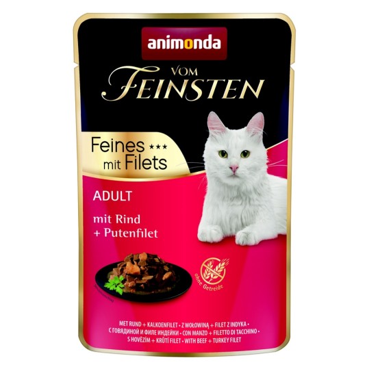 Nawet wybredne koty nie trzeba zapraszać "do stołu", gdy w menu pojawi się animonda vom Feinsten Adult. Mokra karma z drobnymi kawałkami w pysznym sosie nie tylko dobrze smakuje, ale również przekonuje zrównoważonym składem, który dostarcza kotu wszystkich ważnych składników odżywczych.