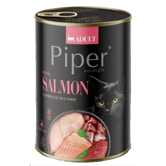 Karma Piper Animals jest pełnoporcjowym, bytowym produktem pokrywającymi w 100% dzienne zapotrzebowanie na wszystkie składniki odżywcze, mineralne i witaminy dorosłych kotek/ kotów wszystkich ras o umiarkowanej aktywności fizycznej, przebywających w komfortowych warunkach otoczenia, niebędących w ciąży bądź laktacji. Została zbilansowana pod kątem zawartości składników odżywczych w oparciu o nowoczesne normy żywieniowe i zalecenia prawidłowego żywienia. Zapewnia prawidłowe utrzymanie mineralizacji kości i zębów oraz prawidłowy przebieg wszystkich procesów metabolicznych. Szczególnie cenna jest obecność wysokiej zawartości kwasów EPA i DHA – kwasów biorących udział w procesach ochronnych w stosunku do tkanki nerwowej i uczestniczącej w procesach rozrodczych - ich łączna zawartość w karmie wynosi 1% w całej puli kwasów tłuszczowych. Występujące kwasy tłuszczowe z rodzin n-6, w istotny sposób wpływają na regulację procesów metabolicznych i łącznie z kwasami tłuszczowymi n-3 odgrywają istotną rolę w hamowaniu procesów zapalnych.