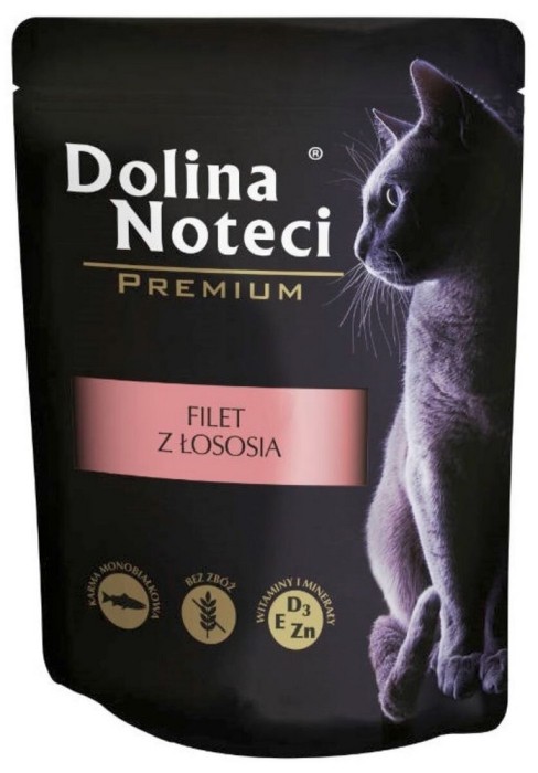 Aby zadbać o zdrowie oraz dobre samopoczucie kota należy spełnić jego żywieniowe oczekiwania. Produkt dzięki wykorzystaniu mięsa z łososia jest źródłem białka o wysokiej strawności i jakości biologicznej. Jest również bogaty w wartościowe aminokwasy, m.in.: lizynę, leucynę, metioninę, selen, miedź, cynk, niacynę, witaminę B12 oraz witaminy rozpuszczalne w tłuszczach. Z żywieniowego punktu widzenia bardzo ważna jest też obecność w karmie kwasów tłuszczowych zarówno z rodziny n–3, n–6, jak i kwasów EPA i DHA. Determinują one bowiem prawidłowe funkcjonowanie układu nerwowego i wpływają na ograniczanie procesów zapalnych oraz stymulację układu mięśniowego. Podając kotu karmę Dolina Noteci Premium filet z łososia masz pewność, że dostaje to… co najlepsze!