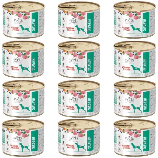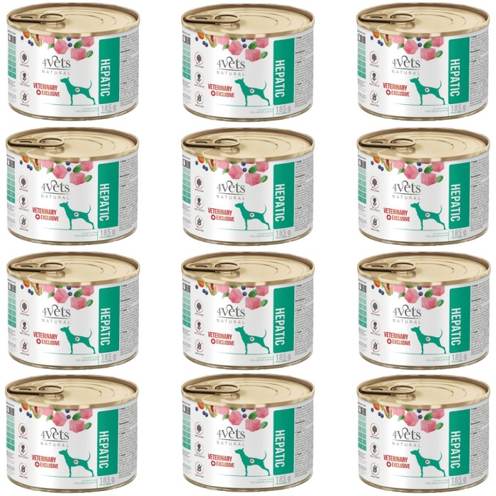 Dieta weterynaryjna 4vets Hepatic to pełnoporcjowa specjalistyczna karma dla psów cierpiących na niewydolność wątroby oraz inne jej schorzenia. Ograniczona podaż wysokiej jakości białka wpływa korzystnie na funkcjonowanie wątroby i regenerację hepatocytów oraz zapobiega zanikowi tkanki mięśniowej. Wysokostrawne węglowodany zawarte w diecie stanowią niebiałkowe źródło energii, których metabolizm nie prowadzi do powstawania toksycznych produktów przemiany białkowej.