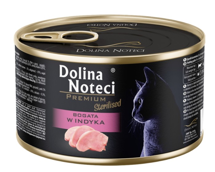 Karma Dolina Noteci Premium bogata w indyka to pełnoporcjowy posiłek opracowany specjalnie z myślą o dorosłych kotach po sterylizacji, który spełnia ich specyficzne potrzeby żywieniowe. Wysokiej jakości składniki, charakterystyczne dla serii Dolina Noteci Premium, zapewniają właściwy bilans aminokwasów i kwasów tłuszczowych.